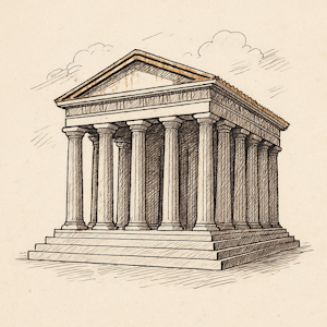 直線的な柱や大きな屋根を備えた古代建築が典型で、宗教的象徴というよりは歴史的建造物のイメージが強く残っています。