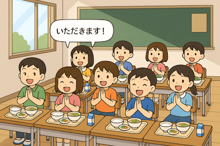 同時期に全国で学校給食が整備され、食事の前に教師の号令で「いただきます」を唱える形式が定着しました。